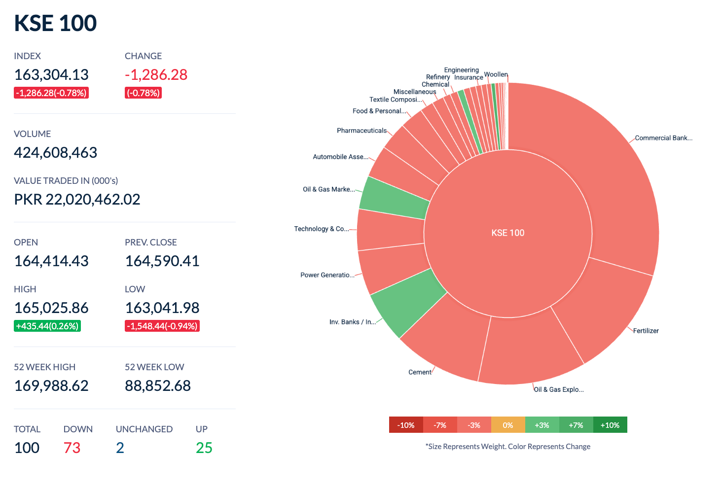 The Pakistan Stock Exchange (PSX) traded within a narrow range last week, as early optimism faded amid mixed investor sentiment and bouts of profit-taking. Initial gains — fueled by easing regional tensions and encouraging economic indicators such as the September 2025 current account surplus — were later tempered by cautious trading. The KSE-100 Index eventually settled at 163,304 points, marking a week-on-week decline of 502 points (0.31%).